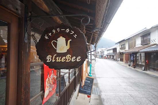 暖簾が並ぶ勝山の美しい街並みの中にあるギャラリーカフェBlue Beeさん。店内はギャラリーになっていて店主さんの作品が並んでます。八景のロビーに飾ってあるうさぎの置物も実はここで作ってもらいました。